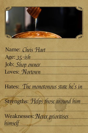 Chris Hart owns the only grocery shop in Nortown, but he isn’t exactly overrun by customers. Some days he wonders why he bothers to open the doors at all. Spending his days smiling at the few people trickling in and his nights alone in bed isn’t the most interesting life a man could lead. But when Chris suddenly gets the excitement he’s been craving, it may be more than he bargained for.